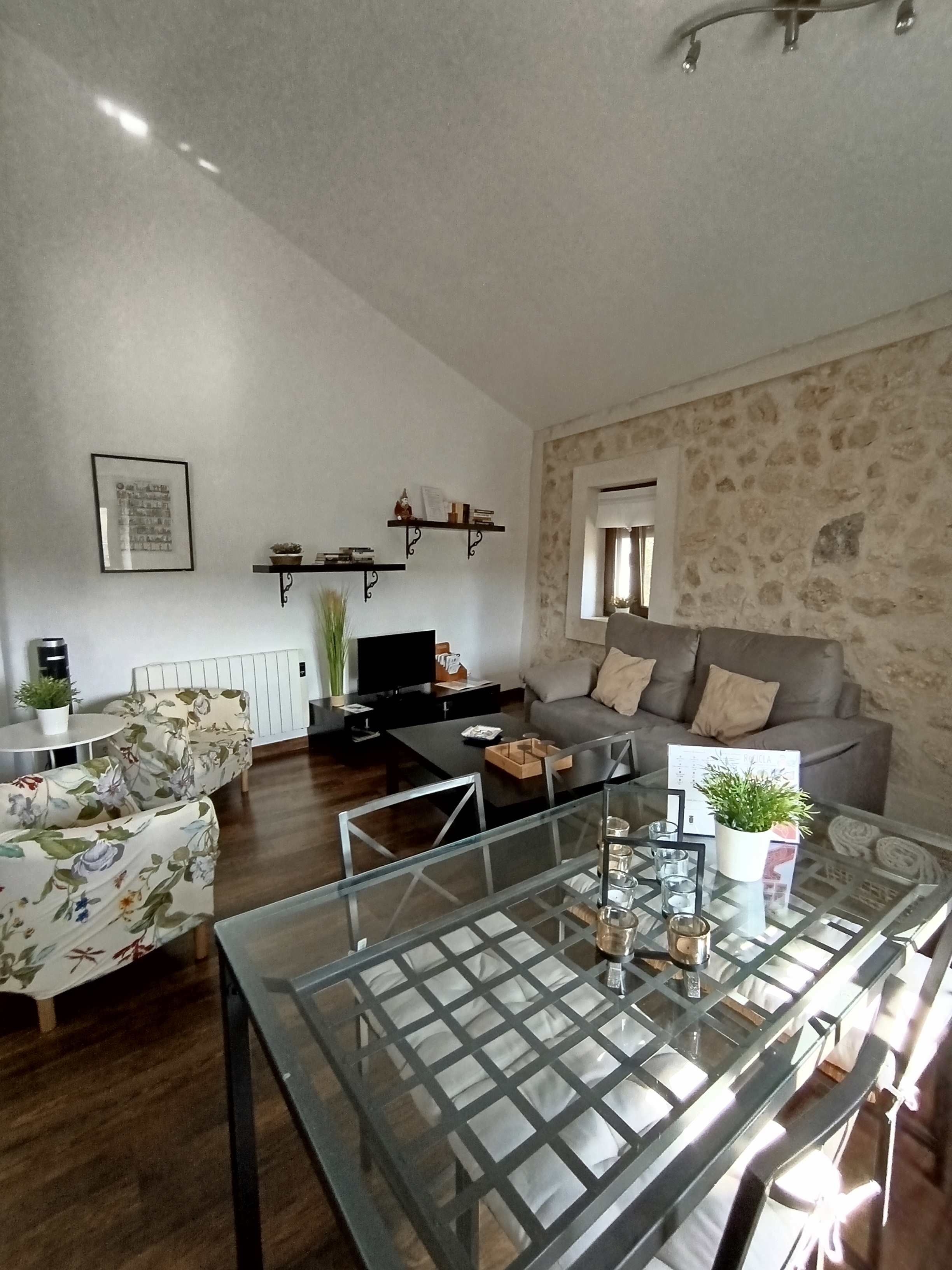 Una construcción típica de la villa , totalmente reformada con todas las comodidades de estos tiempos pero con el sabor del pasado, en donde poder disfrutar de las vistas de la Iglesia, del paisaje de la Olmeda o descansar tranquilamente en su patío exterior disfrutando de la paz y sosiego del entorno o una barbacoa con amigos o familia.